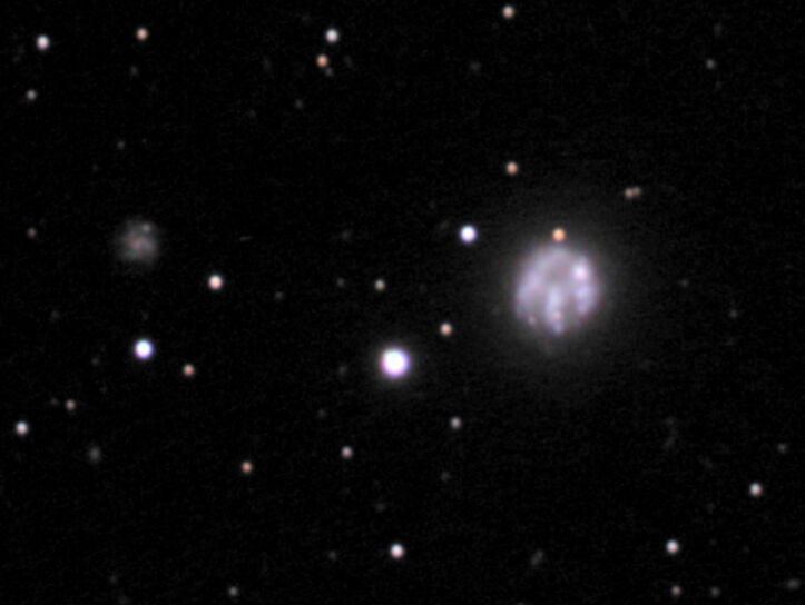 Ufo-Galaxie und schwächere im Hintergrund